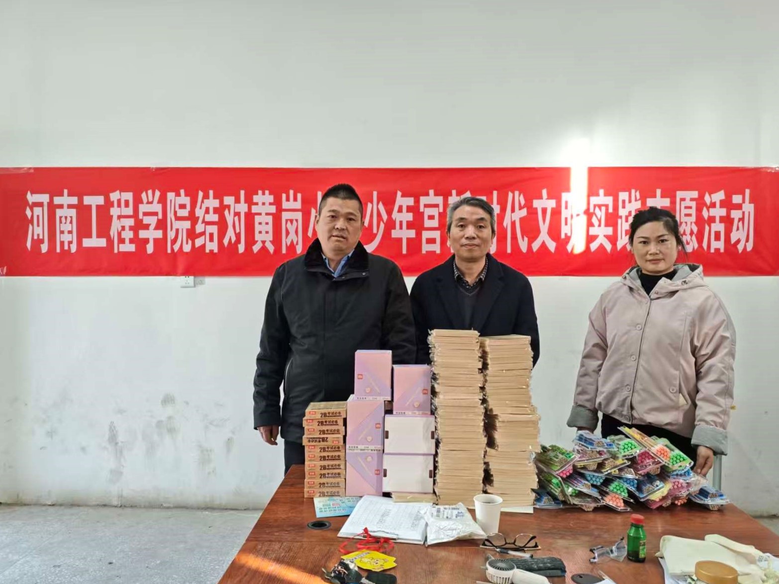 近日,服装学院党委书记潘景果带队赴太康县转楼镇黄岗小学开展“beat365正版唯一官网结对黄岗小学少年宫新时代文明实践志愿活动”。黄岗小学校长程勉鹏热情接待。