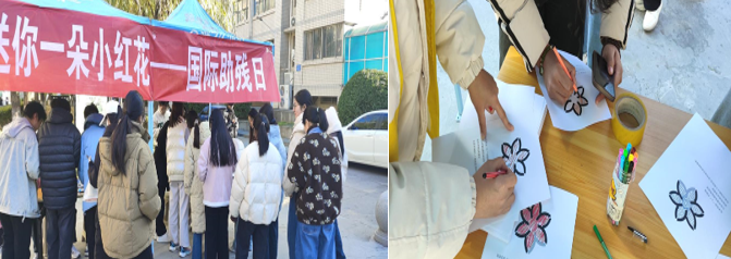 12月3日,指间情手语协会、校爱心社指间情“手语教学”活动在南区龙源餐厅路口举办。参与者凭借丰富的想象力,在纸上绘出绚丽花朵,悄然打破了无声与有声之间的无形壁垒,让爱意在不同世界间自由流淌。这场助残日活动,为残障朋友们送去了尊重、温暖与希望。