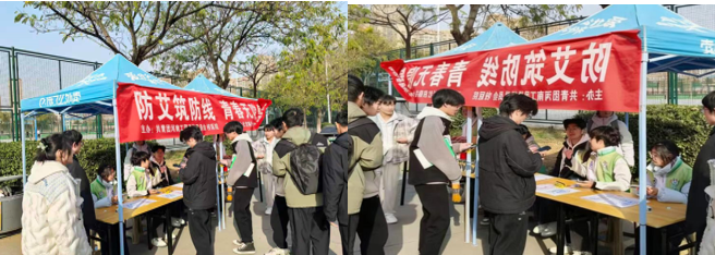 12月1日,青年志愿者协会“防艾筑防线 青春无隐患”主题互动活动在西区圣源餐厅与A05教学楼十字路口、南区校医院门口举办。活动现场氛围热烈非凡,同学们踊跃参与线下答题,在趣味横生的互动中学习防艾知识、掌握防护技能。此次防艾主题活动,既为同学们搭建了学习健康知识的平台,也让防艾防护的意识在青年群体中得到强化。