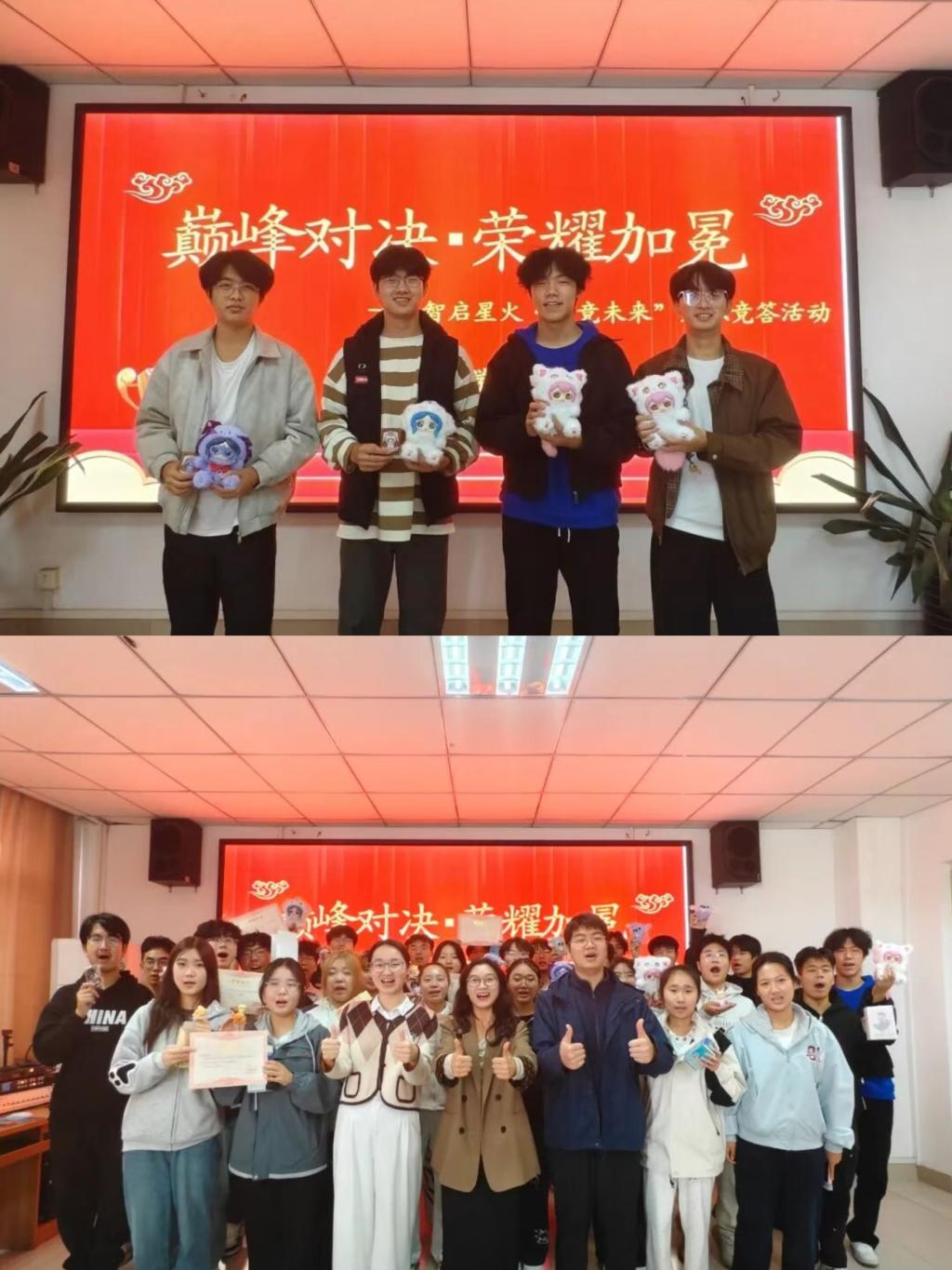 10月30日决赛当天,8支晋级队伍再次齐聚教室,一场知识与智慧的对决即将上演,决赛的题目难度有所提升,题型也更加多样。抢答题环节中,各队伍之间的竞争愈发激烈,有的队伍凭借敏捷的反应速度和丰富的知识储备,连续抢到答题权并准确作答,逐渐拉开了与其他队伍的分差,有的队伍则因为抢答失误或答题错误,错失了得分的机会,但他们并没有放弃,依然全力以赴地投入到后续的比赛中。经过激烈的角逐,最终评选出了一、二、三等奖。学院为获奖队伍颁发了荣誉证书,还精心准备了盲盒作为活动奖品。