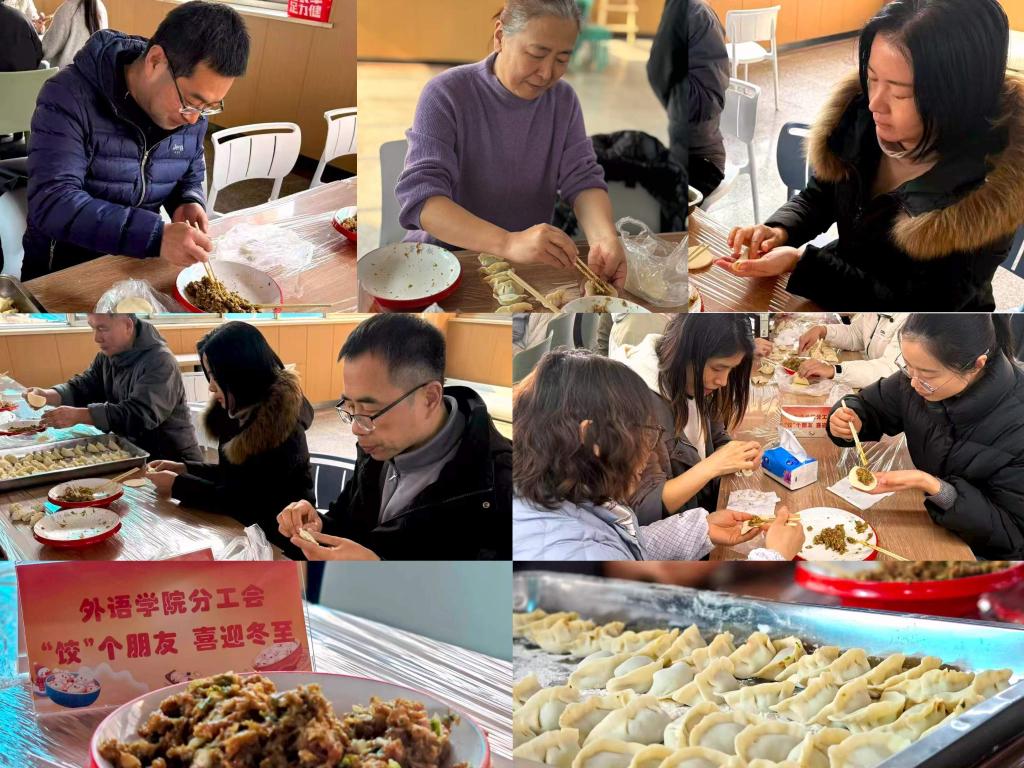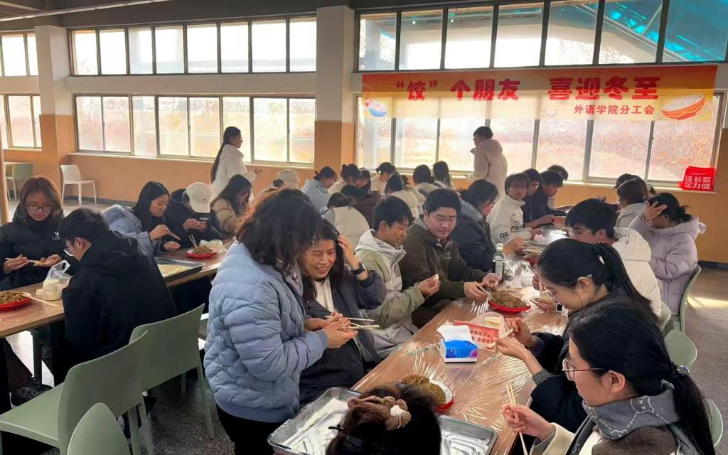 冬至阳生,岁回律转。为传承中华优秀传统文化,搭建师生交流温馨平台,12月17日,外语学院分工会在南区龙源食堂二楼成功举办“饺”个朋友・喜迎冬至活动。分工会全体会员与部分优秀学生代表齐聚一堂,以包饺子的传统方式共迎佳节,暖意融融。