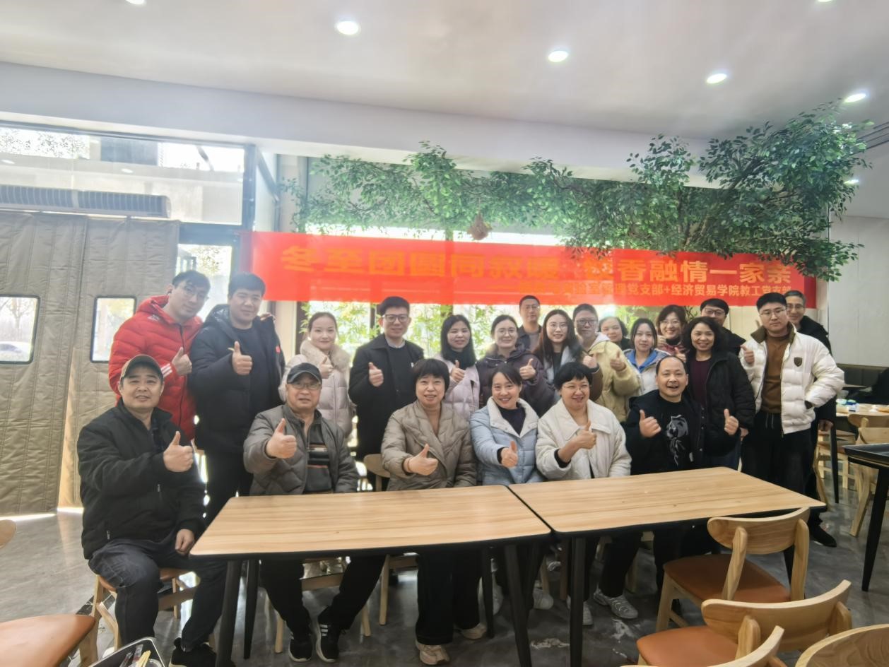 冬至阳生春又来,支部共建暖意浓。为弘扬中华优秀传统文化,增进支部间交流互动,营造团结和谐、积极向上的工作氛围,12月18日中午,国资与实验室管理党支部与经济贸易学院教工党支部在南校区龙源餐厅一楼联合举办了“冬至团圆同叙情,饺香融情一家亲”主题党日活动。两个支部的党员及部分群众代表齐聚一堂,在欢声笑语中共迎传统节气,感受集体温暖。