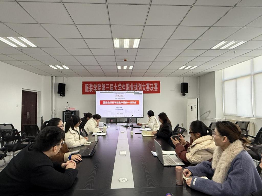 为提升学院教师国家自然科学基金项目的申报质量,助力科研人员把握项目申报的核心要点及难点,12 月 24 日下午,服装学院采用“线上+线下”相结合的模式举办 2026 年国家自科基金项目论证会,邀请东华大学纺织学院博士生导师印霞教授担任主讲嘉宾,开展“国家自然科学基金项目申报辅导”专题讲座,并为申报教师进行一对一精准辅导。服装学院院长刘杰、副院长王旭及青年博士在9B513参加了此次活动,学院其他教师在线上参会。