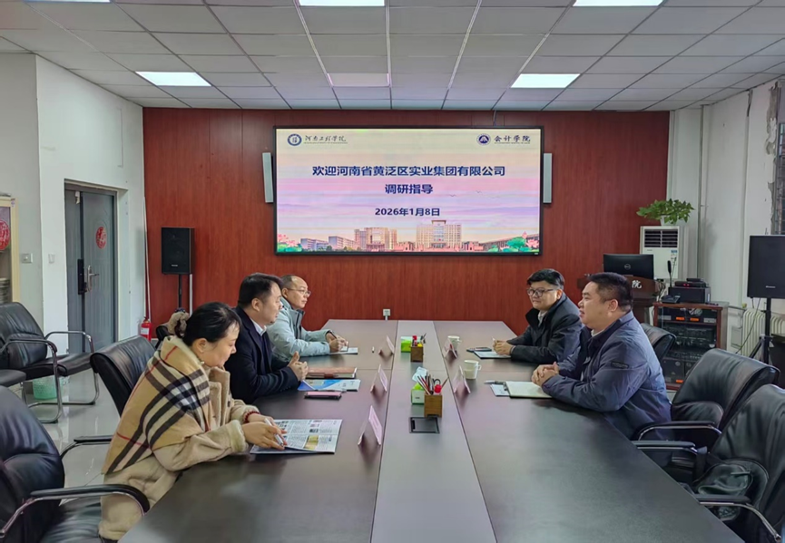为深化产教融合、搭建校企协同发展桥梁,1月8日上午,河南省黄泛区实业集团有限公司(以下简称黄泛区集团)党委委员、副总经理梁欢、财务管理部部长单全一行到会计学院开展调研交流。会计学院党委书记、院长程光,党委副书记张维,数智财经创新研究中心副主任张圆参与座谈。
