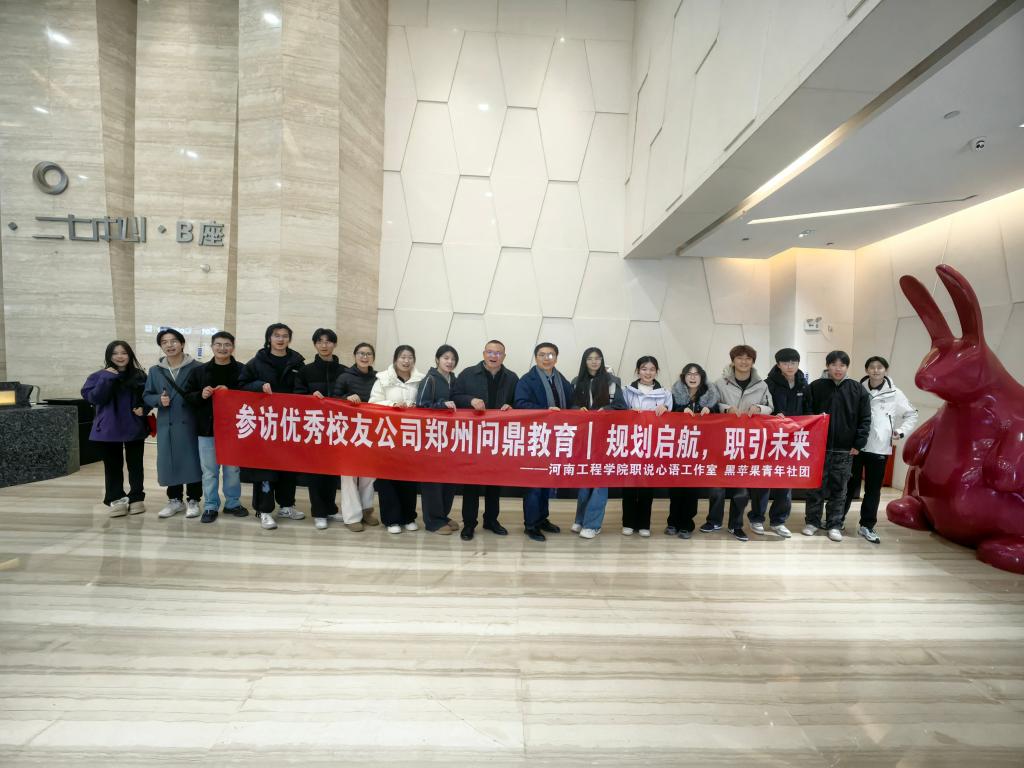 1月15日下午,创新创业学院黑苹果青年社团学子在指导老师叶心宇的带领下,走进校友公司郑州问鼎教育开展参访活动。
