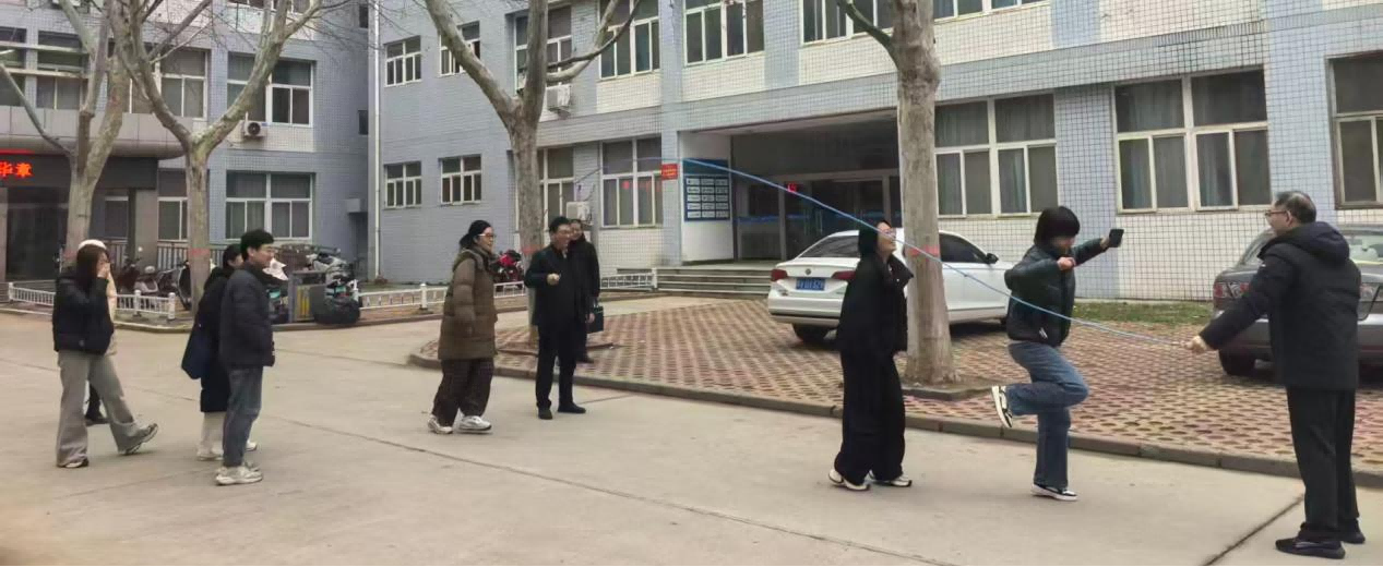 随着活动正式开始,现场瞬间被活力点燃。跳绳活动中女教职工们身姿轻盈、动作敏捷,每一次起跳落地都精准有力,展现出良好的运动状态,在长绳的起落间有序穿梭,加油声、欢笑声此起彼伏,大家相互鼓励、彼此加油,充分彰显了团结协作、奋勇争先的团队精神。男教职工们也主动担任起摇绳员,为活动顺利开展保驾护航,与女教工一起庆祝节日,现场洋溢着和谐融洽的浓厚氛围。