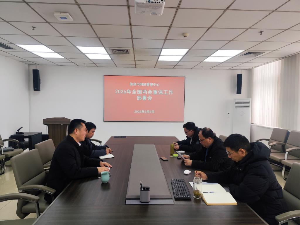 3月3日下午,信息与网络管理中心在龙湖校区西区图书馆八楼会议室召开2026年全国两会重保工作部署会,会议由中心主任马小雨主持,中心各科室负责人参会。