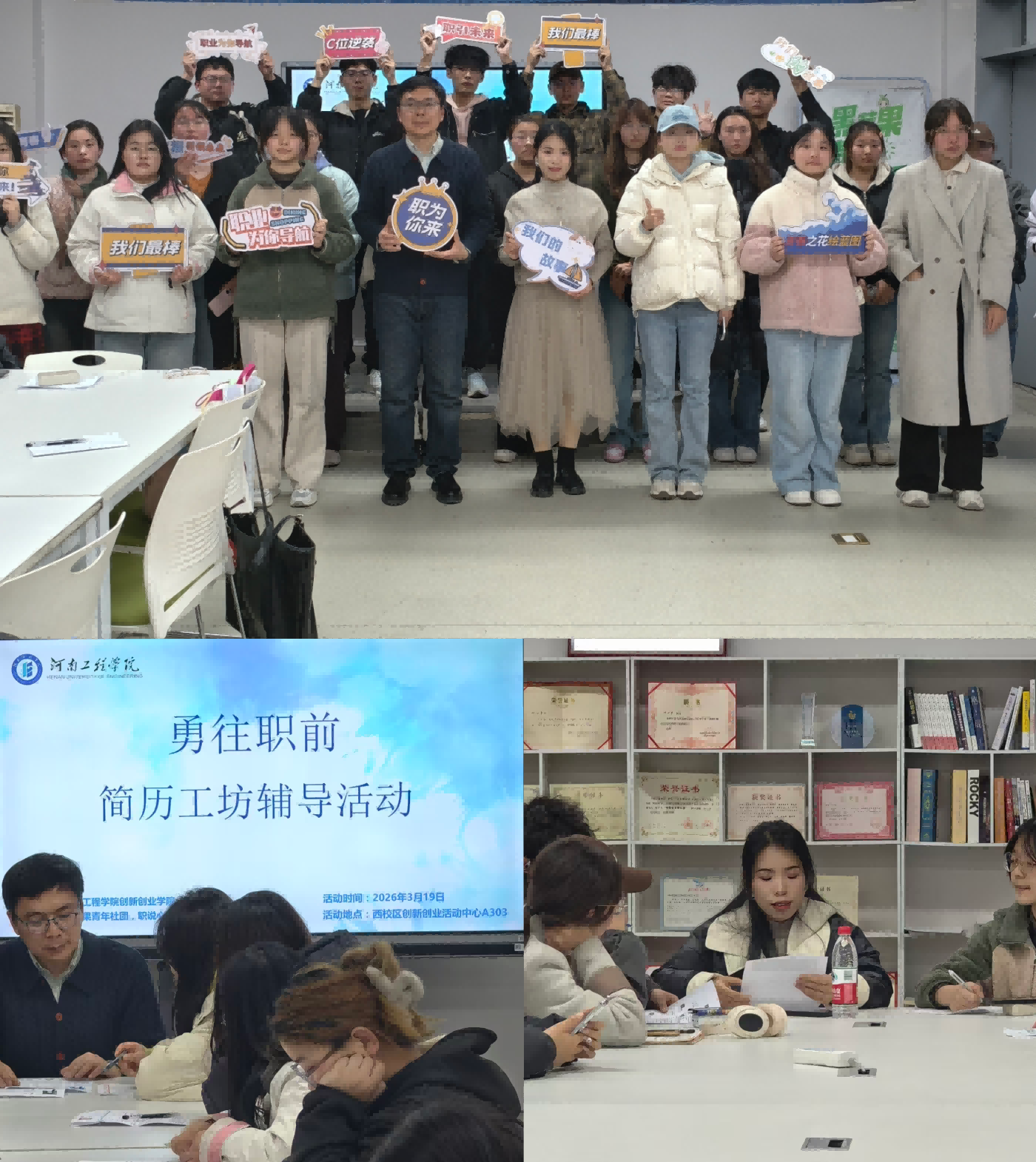 3月19日晚,beat365官网在创新创业中心举办勇往 “职” 前简历工坊专题活动。本次活动由创新创业学院主办,职说心语工作室、黑苹果青年社团承办。活动特邀河南省教学名师(张珺教学名师工作室)团队成员、就业指导副教授叶心宇与理学院辅导员刘振华担任指导老师,为近30名参训学生开展简历专项辅导。活动采用 “一对一个案指导 + 简历团体辅导” 相结合的形式,精准助力学生提升简历质量与求职竞争力。