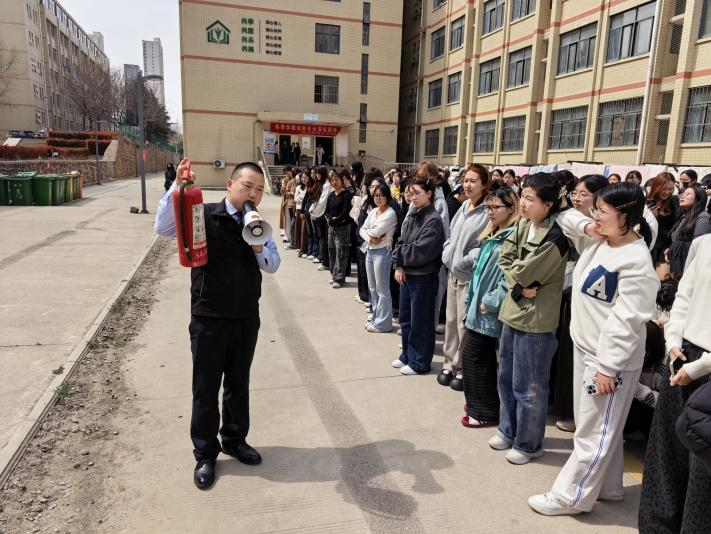 演练开始后,在各楼层学生安全员的有序疏导下,同学们用湿毛巾捂住口鼻,弯腰低姿,沿着疏散路线快速、有序地向指定的安全集结地撤离,快速高效完成演练任务。疏散演练结束后,郑州市消防协会葛老师为师生们带来了一场生动实用的消防安全知识技能培训。葛老师首先围绕着日常消防隐患的识别与预防、初期火灾扑救与火场自救逃生的科学方法进行讲解,并结合相关新闻报道警示学生“火灾无情,生命无价”,接着,葛老师就常见灭火器的正确使用与实操要点来展开讲解,归纳“提、拔、握、压”四字操作步骤,并现场邀请学生亲身体验干粉灭火器的正确使用方法,最后,葛老师就学生们提出的常见消防安全问题进行互动与解答。