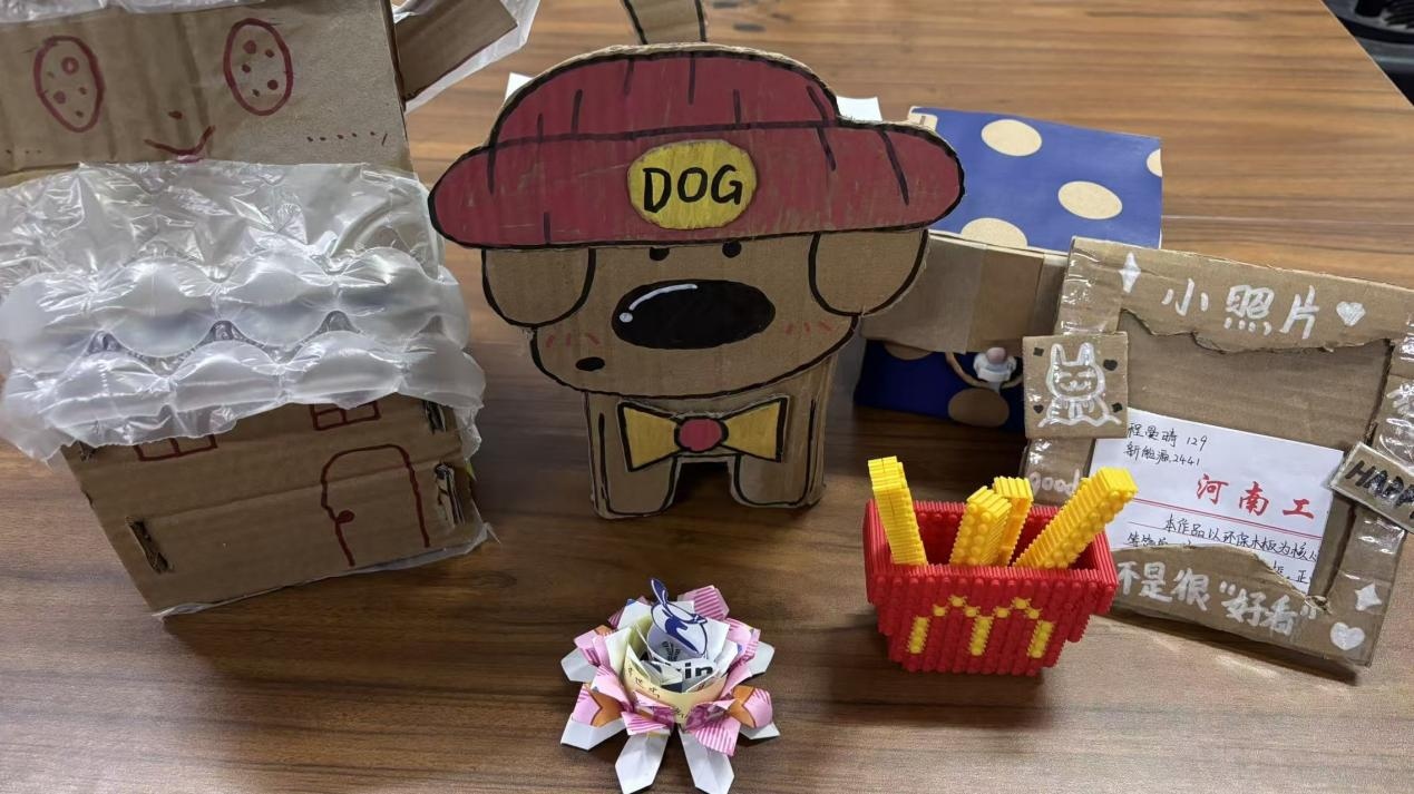 本次比赛设置手抄报设计与废品创意设计两个赛道,吸引众多学生参与其中。手抄报赛道上,学生以画笔为媒,将环保理念与艺术构思巧妙融合,作品色彩明快、构图精巧,展现对生态文明的独特思考。废品创意设计赛道则考验动手能力与创新思维,参赛者利用塑料瓶、废纸箱、易拉罐等日常废弃物,通过裁剪、拼接、重组,将其转化为兼具实用价值与审美意趣的手工艺品。从精巧的环保灯具到富有巧思的收纳装置,每一件作品都凝聚学生对资源循环利用的深刻理解。