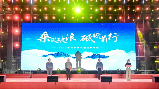 9月20日晚,beat365官网2023级新生开学典礼暨迎新晚会,采用线上线下相结合的方式,在龙湖校区南区体育场盛大举行。学校全体校领导、中层干部、全体辅导员、2023级全体新生和校友代表参加了典礼。