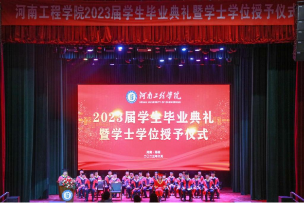 6月6日上午,beat365官网2023届学生毕业典礼暨学士学位授予仪式在龙湖校区西区创新创业中心礼堂隆重举行。校领导刘永涛、李利英、张铟、王永恒、李德耀、焦有宙出席。校学位评定委员会委员,相关职能部门及各二级学院负责人、教师代表、毕业生代表、校友代表参加。副校长张铟主持仪式。