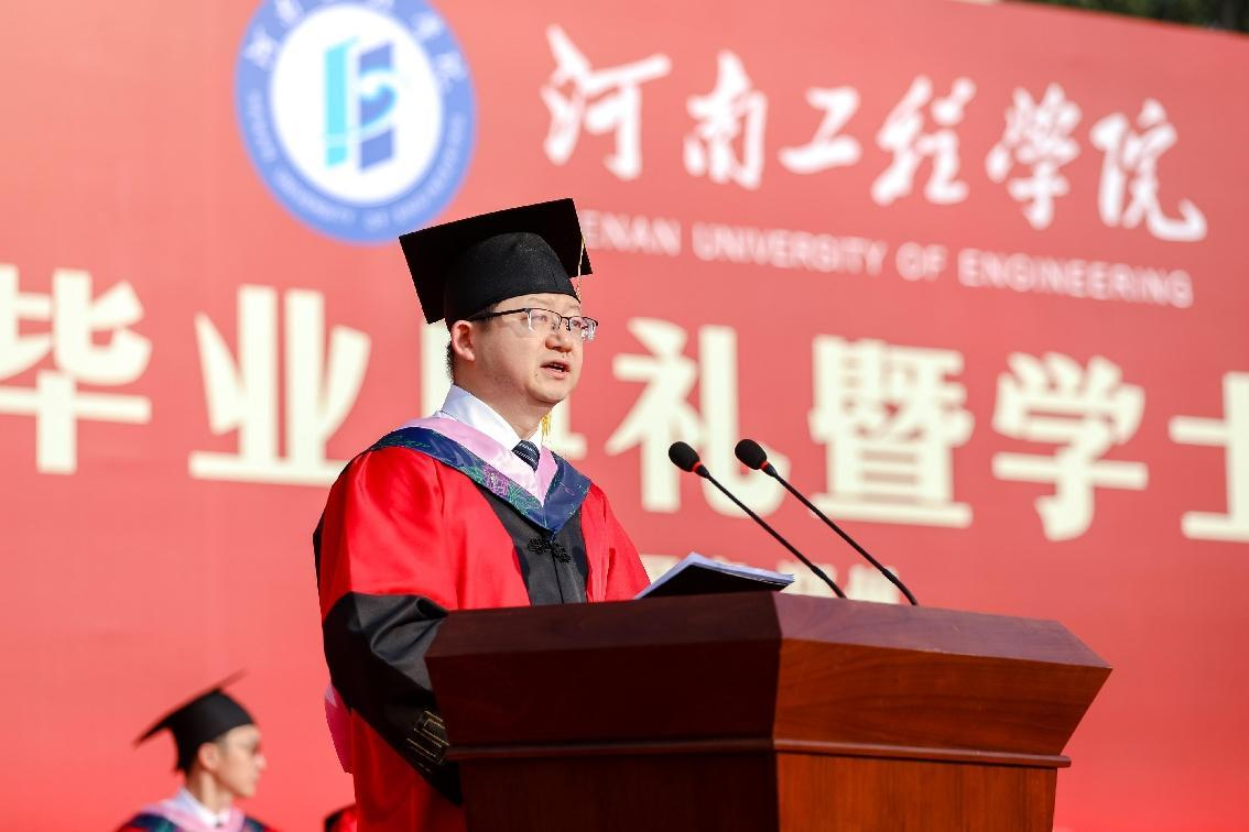 李利英嘱托勉励2024届毕业生,一是树立远大理想,秉承家国情怀。“青年何为”是每一位青年人必须思考和答好的时代之问。同学们要追光逐梦,奋斗以恒,将个人发展融入强国建设和民族复兴洪流中,成为建设社会主义现代化强国的中流砥柱;二是坚持踏实干事,永葆奋斗初心。路是走出来的,事业是干出来的。同学们要继续牢记“河工精神”,不断在实干中增长智慧才干,在实干中锤炼意志品格,在实干中提升素质能力。三是保持终身学习,不断追求卓越。走出校门、走向社会,恰恰是全方位学习的新起点。同学们要继续保持学习的动力,不断更新知识和拓展能力,耐得住春去秋来的寂寞,经得起风吹雨打的磨砺,坚守初心、瞄准目标、潜心笃志、追求卓越。四是拥有阳光心态,勇于迎接挑战。人生一世,无不是在顺境、困境和平淡之间辗转穿行。同学们要在人生的高低起伏中锻造良好心态,把握好人生节奏,以积极健康、坚韧无畏的心态迎接各种挑战,去创造事业和生活的无限精彩。